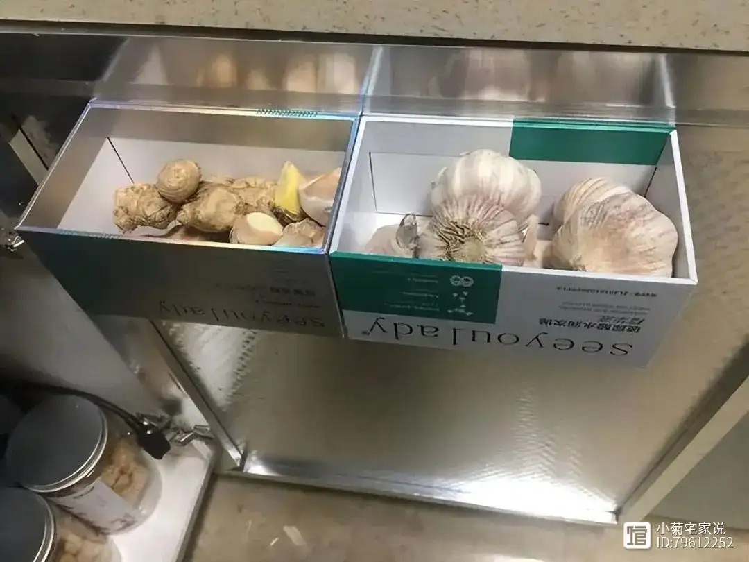 硬纸盒子可以被利用来收纳厨房里的一些杂物,比如姜蒜等。中国的妈妈们会将硬纸盒子裁剪成适当的尺寸,然后放置在橱柜内侧或者抽屉里,用来装载各种食材和调料。