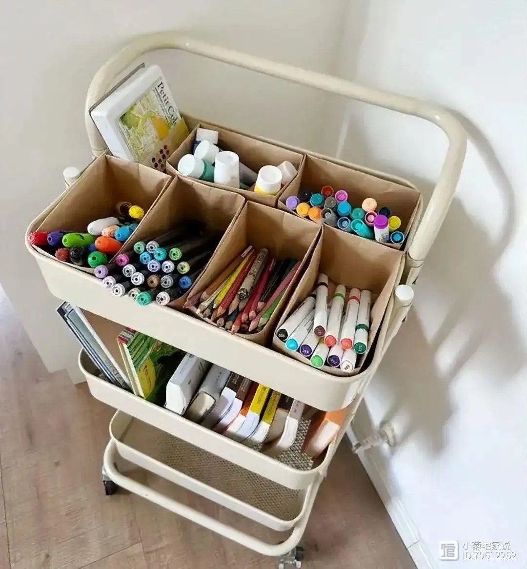 中国的妈妈们会将购物袋裁剪成合适的形状,用来装载化妆品和工具,让化妆桌变得整齐有序。同样,孩子的画笔和其他文具也可以用购物袋来收纳,让孩子的书桌变得更加整洁美观。