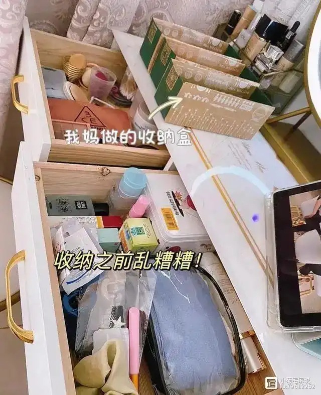 中国的妈妈们会将废弃的硬纸盒子裁剪成适当的形状和尺寸,然后放置在抽屉里,用来分类收纳这些小零碎物品。这样一来,不仅能够让抽屉里的物品保持整洁有序,而且还能够方便取用,提高家庭生活的便利性。