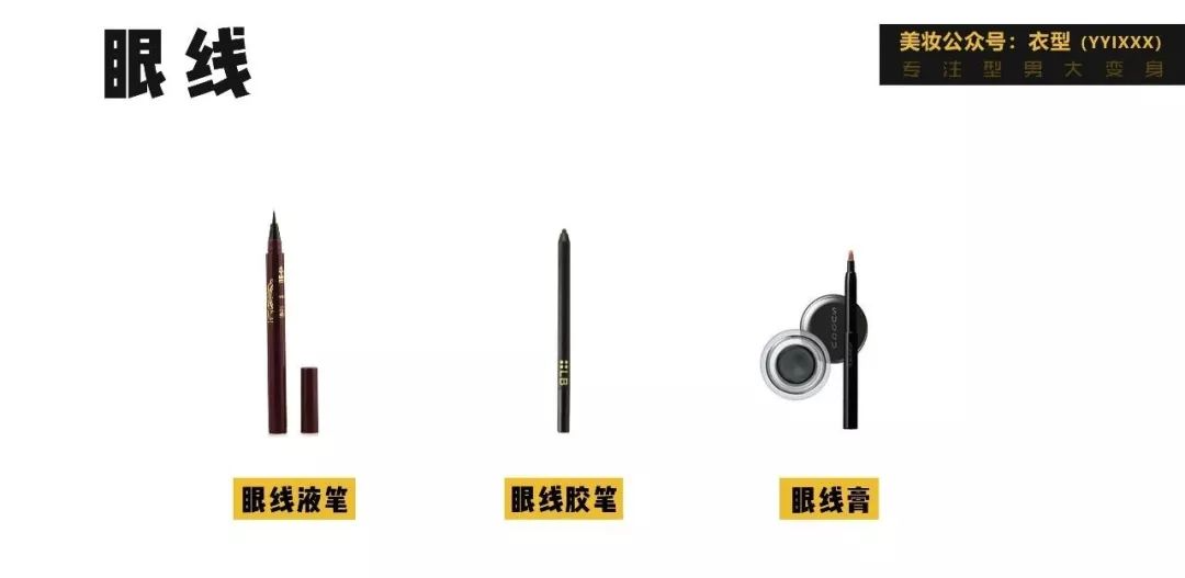 日常中基本很少有男生化眼妆,说起眼妆大家也不要迅速脑补出风雨邪神的模样,眼部使用的产品主要为以下四类: