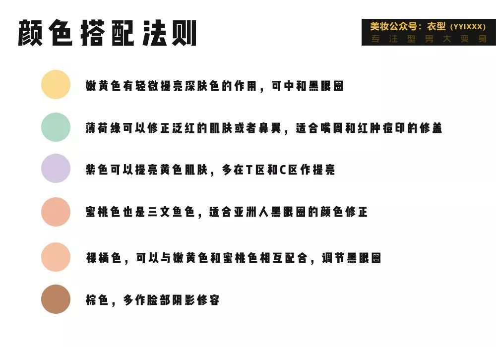现在遮瑕产品的颜色越来越多,不同颜色的搭配,遮盖力得到了大大的提升,主要有以下六种常见颜色: