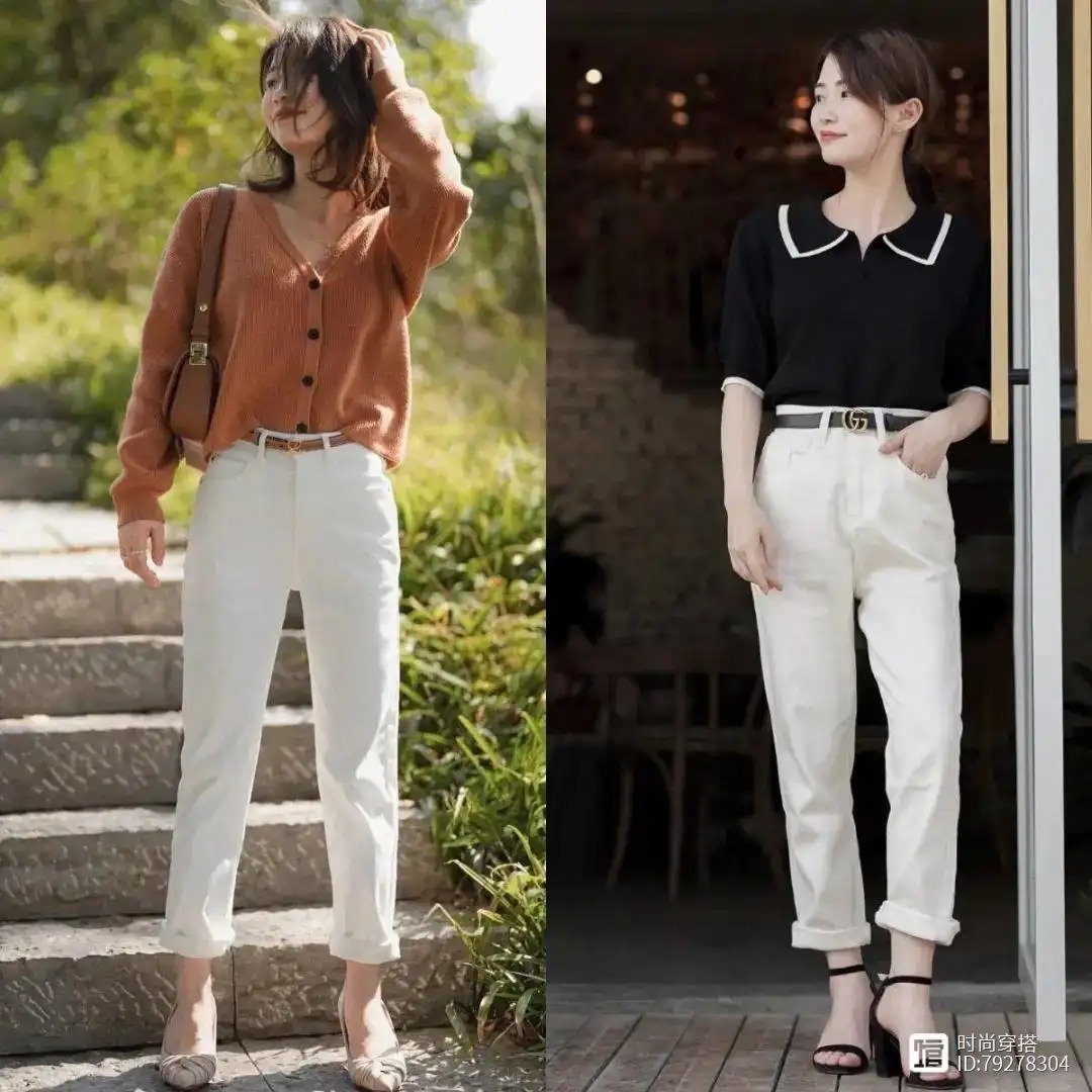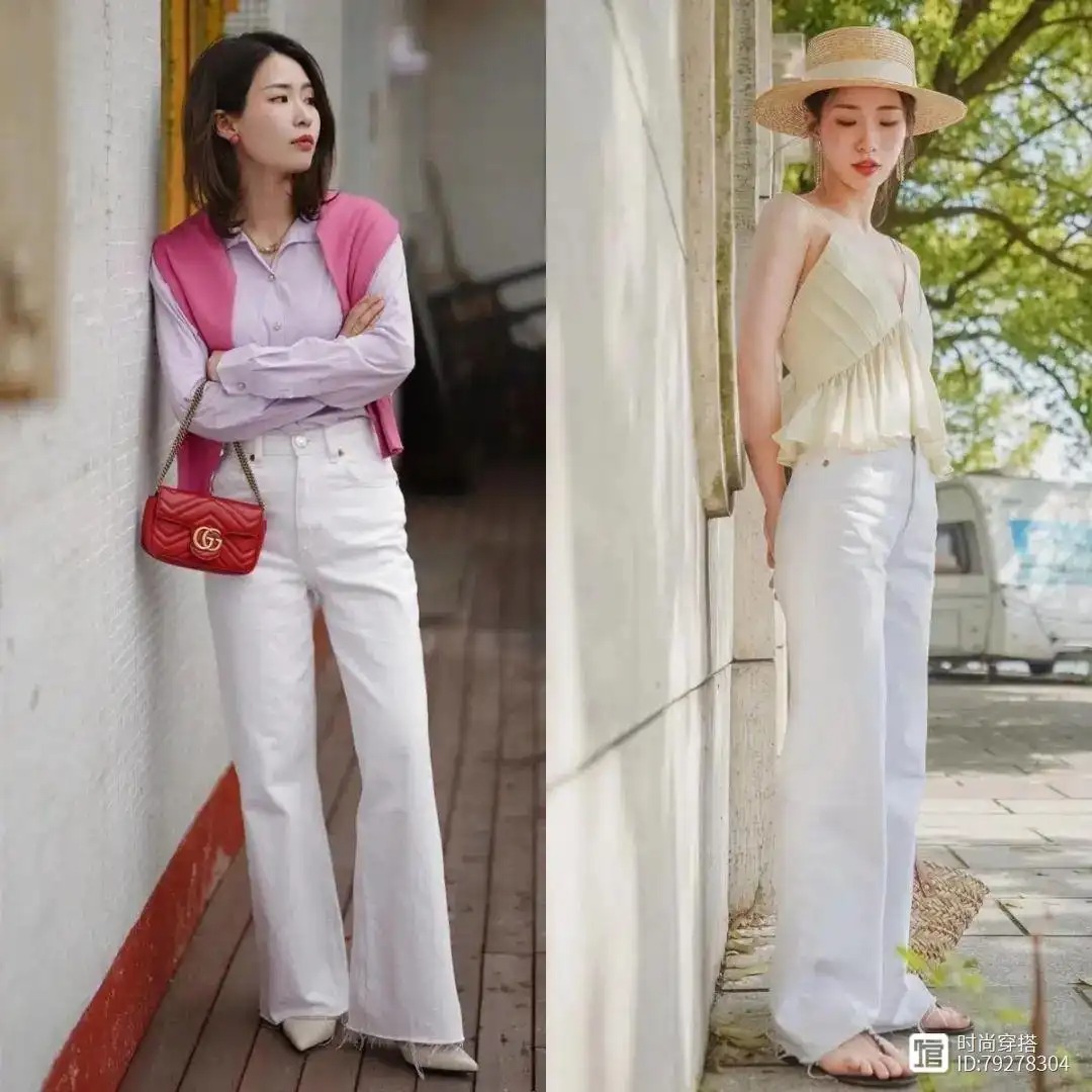 特别是对于身材比例不是很好的女孩,这种搭配方法绝对是最好的使用,上半身使用暴露的皮肤夹克或折叠夹克显示视觉焦点向上的效果,都可以显示视觉焦点,下半身搭配简单的白色高腰裤,身体搭配集中,不会呈现太复杂的感觉。三、局部使用亮色、增加回头率