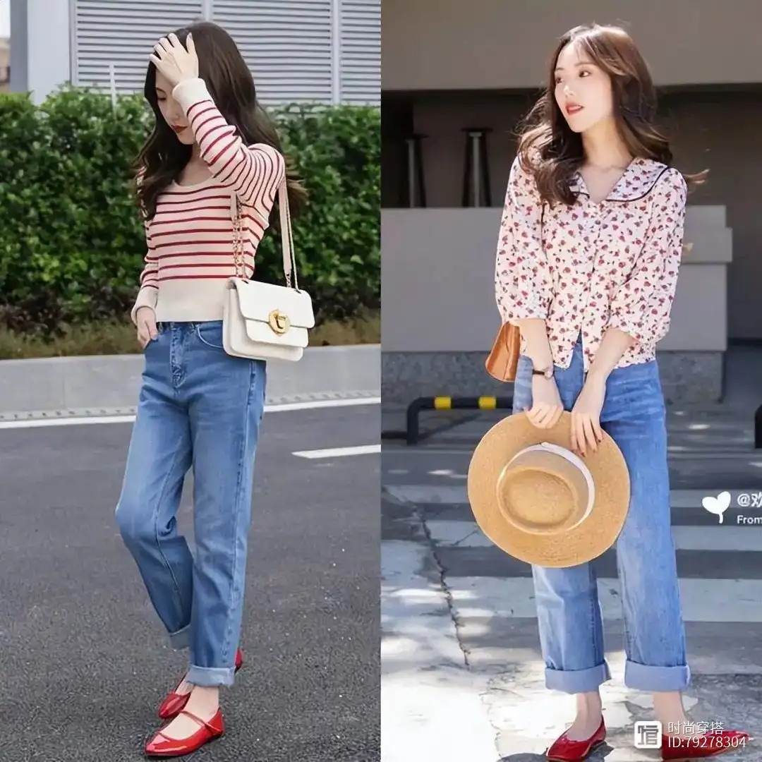 你也可以尝试尖头平底鞋,因为尖头设计可以在视觉上形成拉长效果,有助于延长腿部形状。然而,当你穿平底鞋时,你需要注意。无论你的下半身是搭配裤子还是裙子,长度都不能太长。你可以试试9分钟的裤子或膝盖以上的裙子。五、腰线一定要高