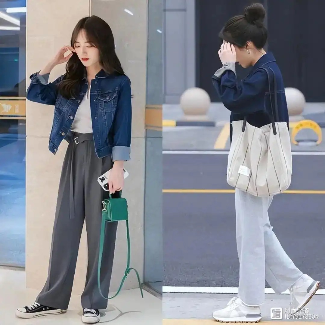 大多数小个子女孩会尝试经典的搭配方式是短夹克和高腰裤的组合,短夹克可以缩短上半身的比例,高腰裤搭配可以延长腿的比例,所以在整体搭配通过缩短巧妙的搭配可以突出非常直观的延长腿的效果。