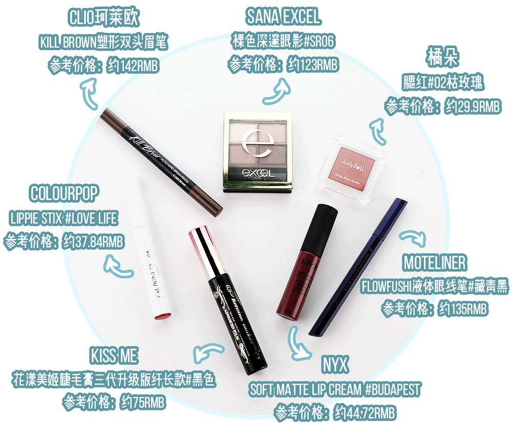 这个妆容需要用到的产品