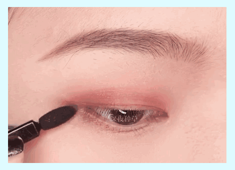 然后在双眼皮上一丢丢的地方