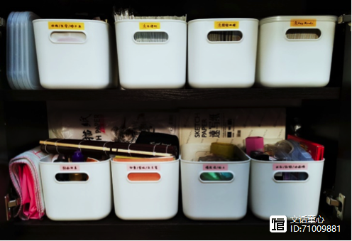 ✦ 所有物品尽量不要堆叠摆放,能站着就绝不躺着,秉承一目了然原则。如非必要,尽量不要使用不透明的盖子,方便快速查找和拿取。