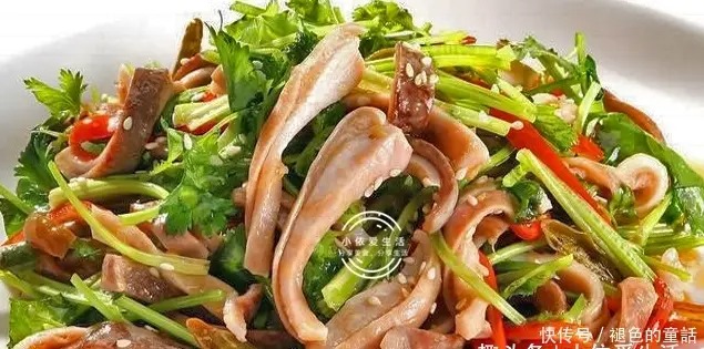 食材:猪肚300克;米酒适量;姜1小块;香菜适量、白芝麻和红辣椒丝适量;葱段适量;酱油适量;生抽、蚝油、白糖、辣椒油、香油、鸡精、蒜末