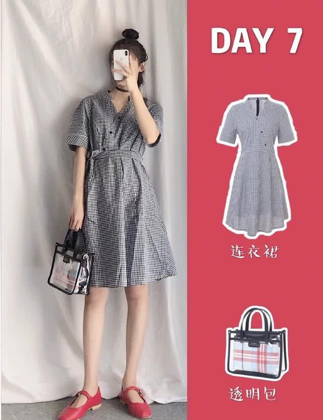 上图:简简单单的一件格子连衣裙,灰色的格调带点复古优雅感,而且也是懒星人最爱的穿搭。如果想要提亮,可以配上一双复古风红色单鞋,就能给这身搭配带来比较有活力的色彩感了。