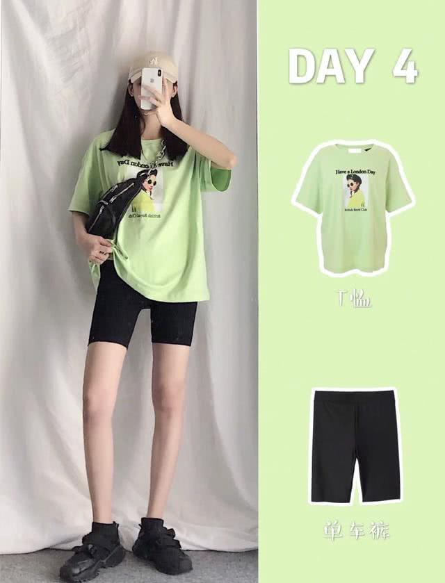 上图:宽松版型的男友风长款T恤,除了可以凹“下半身消失”的穿法,还可以给比较保守的女生搭配一件单车裤来穿出显高显瘦的穿着效果。想要这种日常穿搭比较有范儿,就不要忘了搭配比较有潮感的鸭舌帽、挎包或老爹鞋,才能让你的搭配更有时尚感。