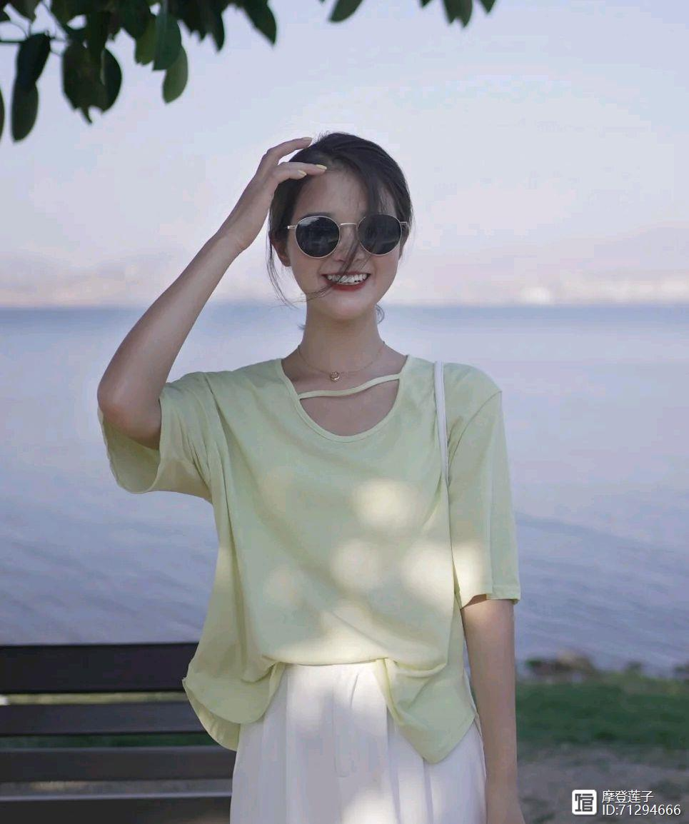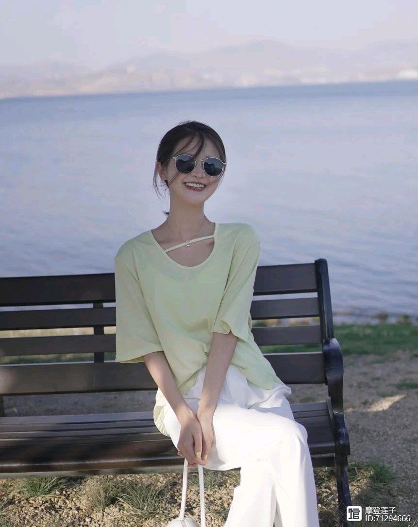 想要穿出清爽干净的感觉,就要优先选择浅色系穿搭,就像这位学生博主一样,选择简简单单的浅黄色T恤搭配白色高腰裤,就穿出了清爽又显白的视觉效果,哪怕服装款式很普通,穿出来的感觉也不难看。