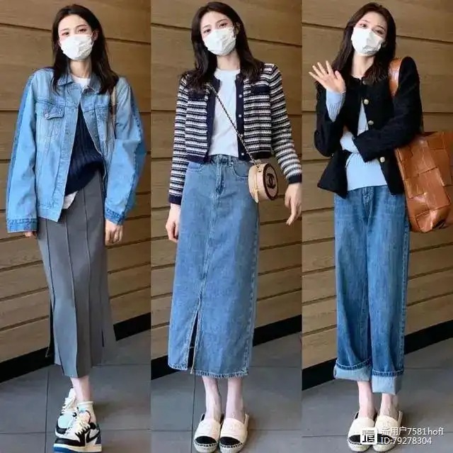 选用牛仔半裙和牛仔裤,如果想穿上温柔一点的话,针织衫是最好的组合,露出脚踝轮廓优雅显瘦,休闲中带点女人味,气质又减龄。