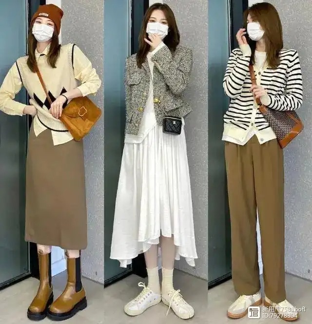 上衣的选择我们可以根据场合来搭配,上班的时候可以穿西装,休闲旅行选择懒洋洋的廓形针织衫,温柔文艺又有女人味。也可搭配T恤叠马甲,护住前胸与后背,保暖时尚两全其美。