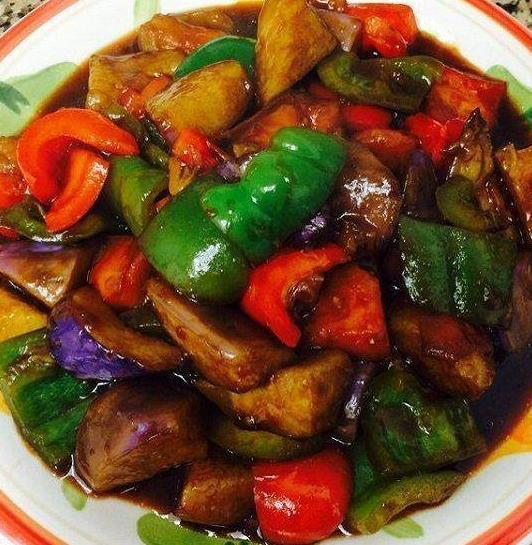 红烧茄子,做法步骤:1、准备好所以食材,并且洗干净2、茄子切好放盐,倒入水泡15分左右,挤出茄子水份,撒入一层薄的玉米淀粉抓匀!3、西红柿青椒切块,葱姜蒜切片4、1勺料酒、2勺酱油、3勺白糖、3勺白醋和香油再加一些清水调汁备用5、锅内放油烧7成热,茄子炸至金黄色捞出6、锅里留油放葱姜蒜煸香7、放入西红柿青椒炒1分钟放事先调好的汁大火烧开8、放入茄子翻炒均匀大火收汁出锅