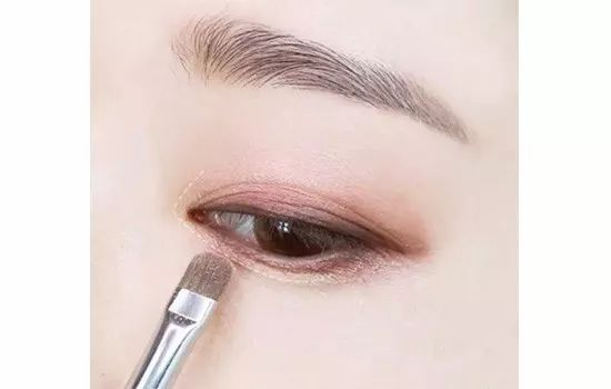 Step 2:用锥形刷沾取棕色眼影扫于双眼皮和眼尾位置。