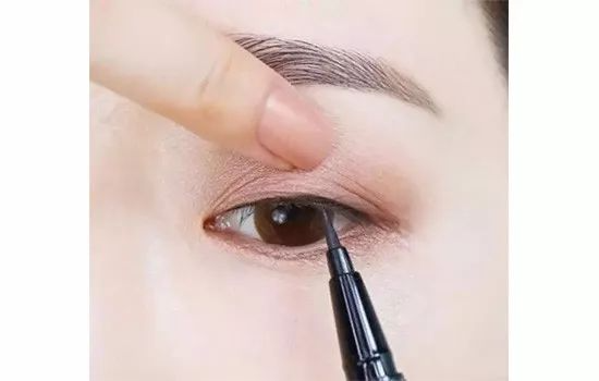 Step 3:以眼线液笔画内眼线,可以用棕色的眼线笔会更自然,注意这里不拉长眼尾。