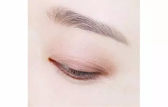 Step 5:用扁平的眼影刷沾取怒深啡眼影扫于眼头的虚线位置,让眼晴看上去更深邃。