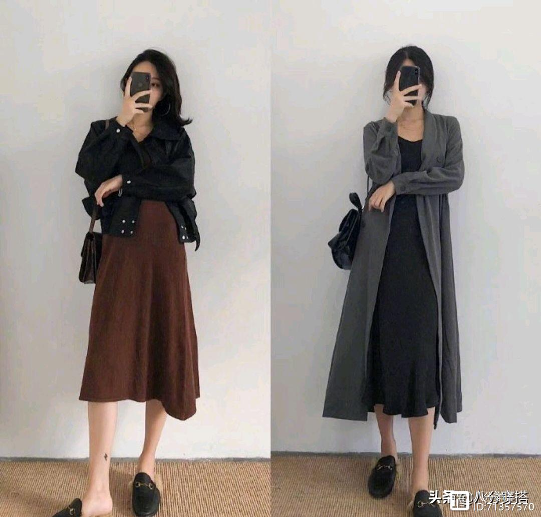 长裙相比短裙,气质上更加的稳重优雅一些,成熟韵味更强,而且多余腿粗的妹子更加友好,黑色上衣搭配棕色的高腰半身裙,利落温柔,配色内敛大气,款式简约流畅,真的很有气质感,也可以直接换成黑色的连衣裙外搭风衣,潇洒不羁,整体感更强,当然气质上也会更加的成熟内敛一些。