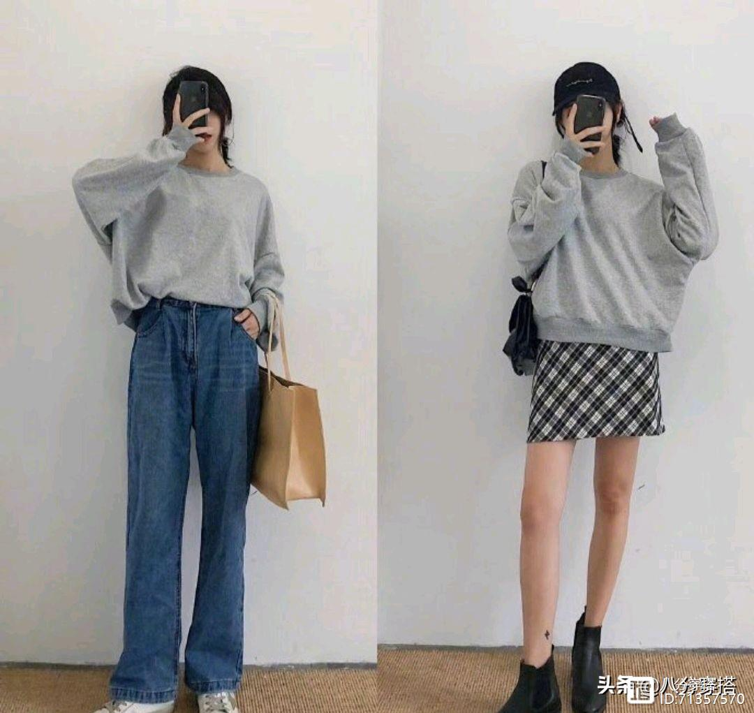黑白灰几乎占据了衣柜的一大半,黑白简约利落,但也乏味枯燥,灰色恰好介于两者之间,有点中庸儒雅的感觉,中和黑色的沉闷,白色的张扬,一件简单的宽松灰色卫衣,舒适随性,简约大方,搭配牛仔裤更加中性洒脱,搭配格纹半身裙展现女性的优雅柔和魅力,秀出长腿更显俏皮可爱的感觉。