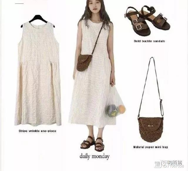 ▲这一套依旧是选择的非常简约的款式,这种简约的款式穿着上身真的超级舒适,有一种慵懒范儿的时尚感。所以非常的日常生活当中穿着,搭配选择了棕色的凉鞋和棕色的包包,这样形成一个剩下的呼应效果,让整体的穿搭更加的协调,更加的有时尚感气质。