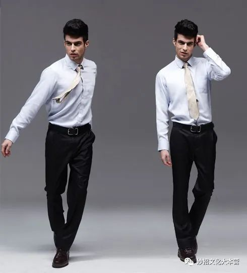4.服色搭配时,上装与衬衫,或上装与裤子的颜色之间要形成较强烈的对比。这样可以从感觉上增加宽度,使人看上去粗壮一点。