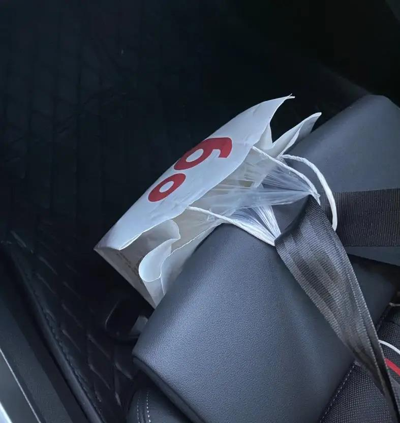 副驾驶的安全带不用时,还可以拿来挂饮料袋。这样饮料就不会洒出来,特别方便。有一次,小吴坐在副驾驶,手里拿着咖啡,正发愁没地方放,突然想到可以把咖啡袋挂在安全带上,问题一下子就解决了。