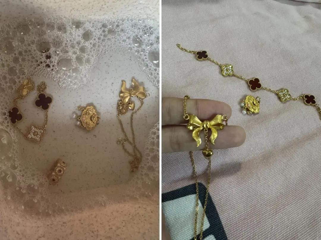 黄金首饰戴久了,可能会变得黯淡无光。这时候,你可以用洗洁精和食盐,倒上开水泡半小时,等水凉后,把金饰拿出来,你会惊喜地发现,金饰又变得光亮如新了。有一次,小刘的金项链看起来灰蒙蒙的,她用这个方法清洗后,金项链瞬间恢复了往日的光彩。