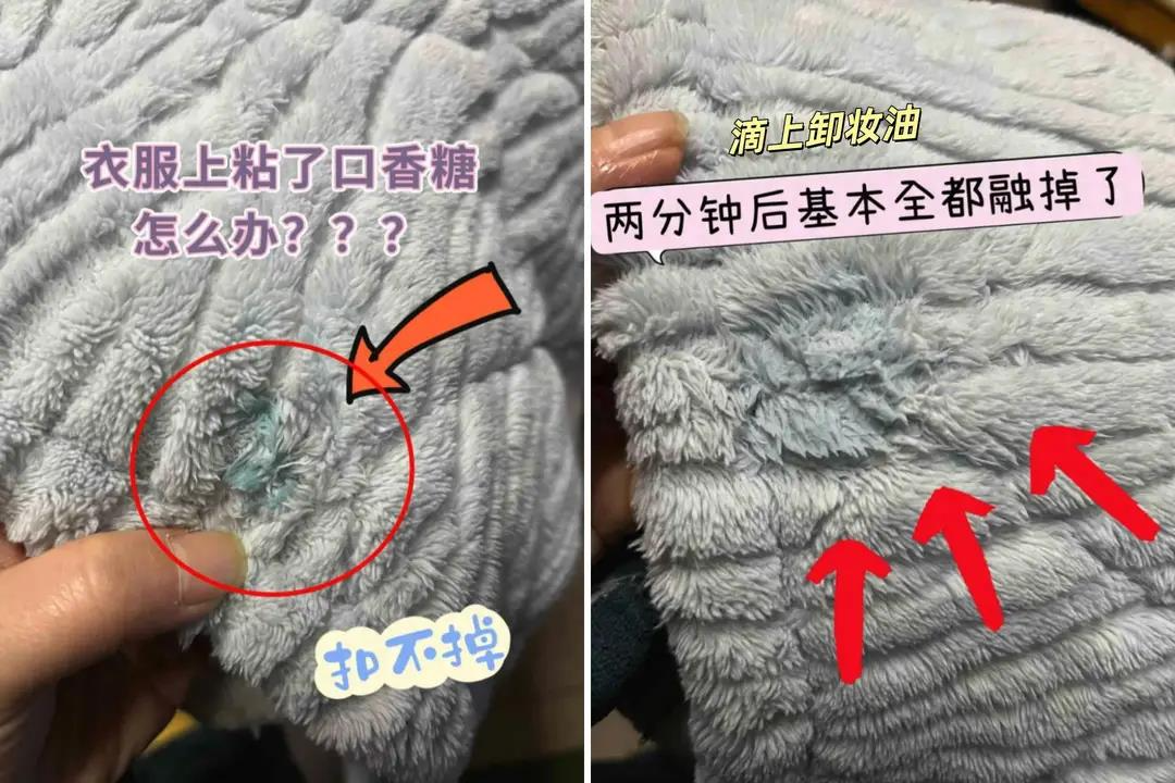 衣服、头发上要是不小心沾了口香糖,或者汽车上被没素质的路人粘上口香糖,怎么都弄不掉,是不是特别让人头疼?别着急,卸妆油就能派上用场。只要把卸妆油滴在沾有口香糖的地方,耐心等上几分钟,口香糖就会慢慢软化,轻轻一擦就能去除掉。小张有一次衣服上沾了口香糖,怎么抠都抠不下来,后来他用了这个方法,轻轻松松就把口香糖清理干净了,衣服也完好无损。
