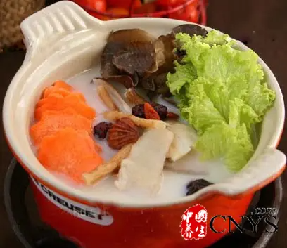 1、将猪骨、滋补药材全部放入火锅(或者一个大砂锅中),加入凉水,用大火烧开,撇去表层浮沫。