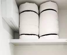 4)被褥等折叠、垂直收纳在普通衣柜的设计中,衣柜的有效进深往往在550mm到600mm左右。对于小户型来说,在有限的衣柜空间中收纳被褥的时候,尽量将被褥卷起并垂直摆放,以节约空间。
