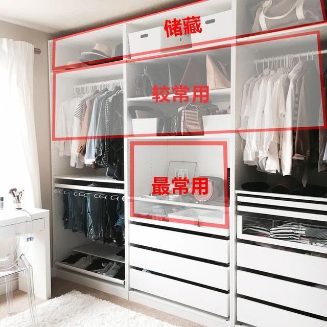物品摆放的位置应该按照使用的频率来决定,常用物品要伸手可及,重的东西往下放,轻的东西往上放。