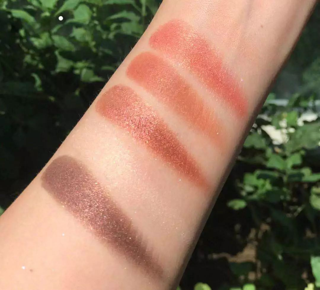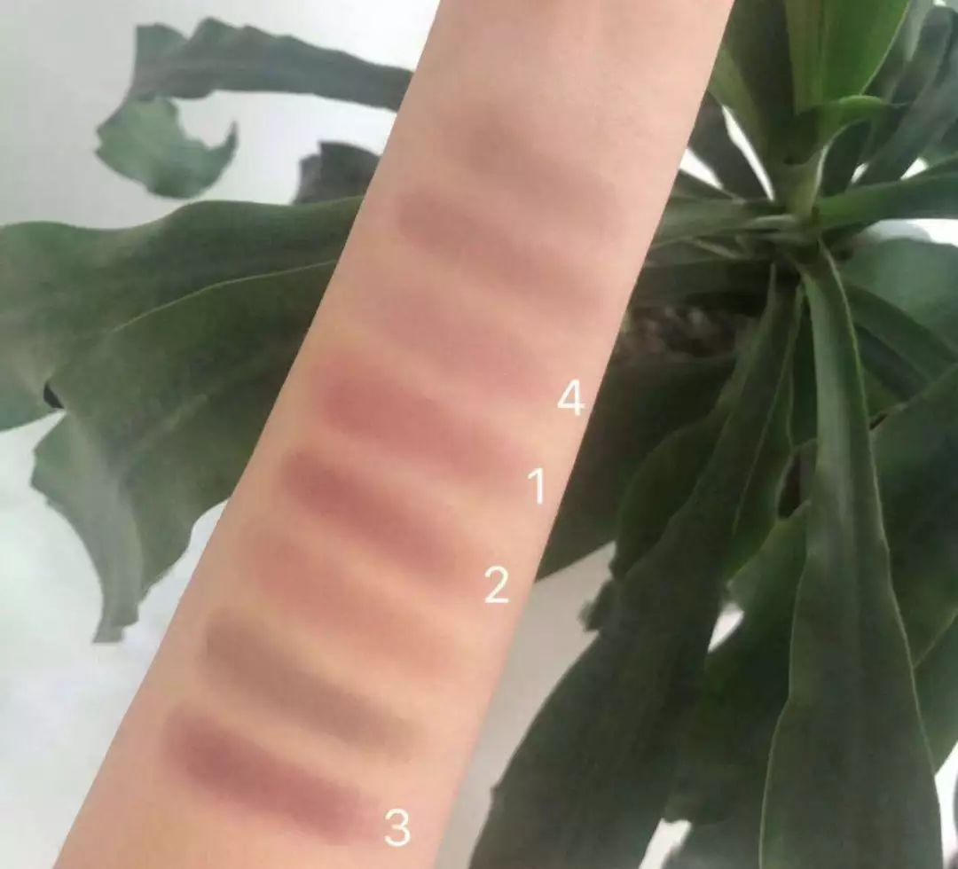 先蘸取中间淡淡的红色大面积地打在眼窝处