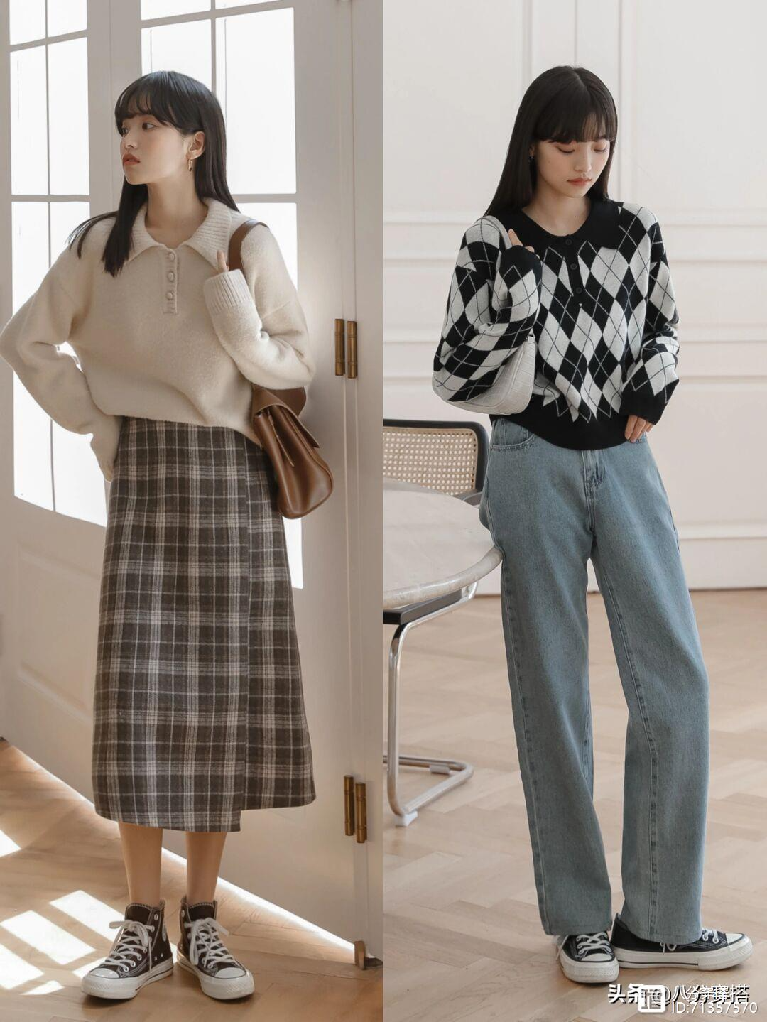 或者是直接选择一些较为花哨的元素运用到单品当中,例如菱格纹,格纹以及,条纹这些元素,经典时髦,一直都是时尚界的常青树,和一些纯色系的单品搭配在一起,不仅能够带来鲜活灵动的魅力,而且有利于缓解秋季的枯燥感,一件绿白的菱格纹针织衫 ,复古洋气又很有学院韵味,绿色选择了暗绿色,给人更为高级和神秘的感觉,在结合上白色的清爽,两者碰撞在一起格外的优雅时髦,菱格纹本身就极具学院风韵味,再结合上针织衫的柔软大方,穿搭起来格外的减龄。