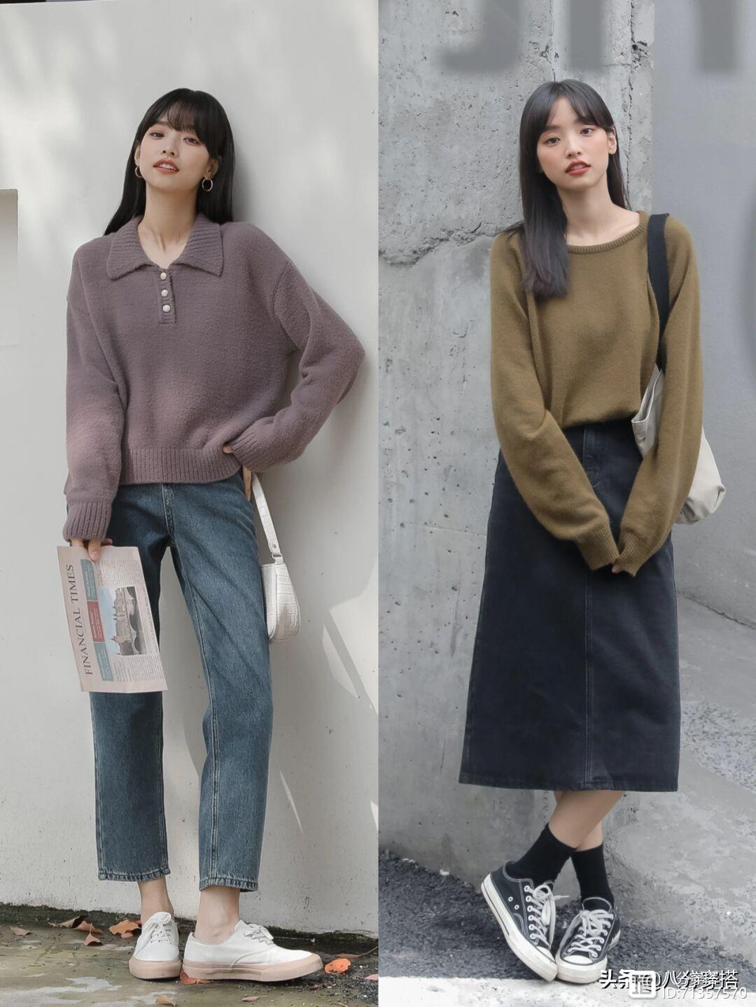 一些个性的颜色往往可以让简单的基础款也迸发出时尚活力,针织衫选择更为高雅神秘的灰紫色,显白又高级,多了一份优雅和矜持的感觉,下半身只需要一条简单的牛仔裤,大方利落,舒适又自然,款式简单,气质减龄俏皮,很适合在休闲逛街的时候穿搭,舒适简单,而且这样的搭配对于年龄也不挑剔,驾驭起来更加轻松。