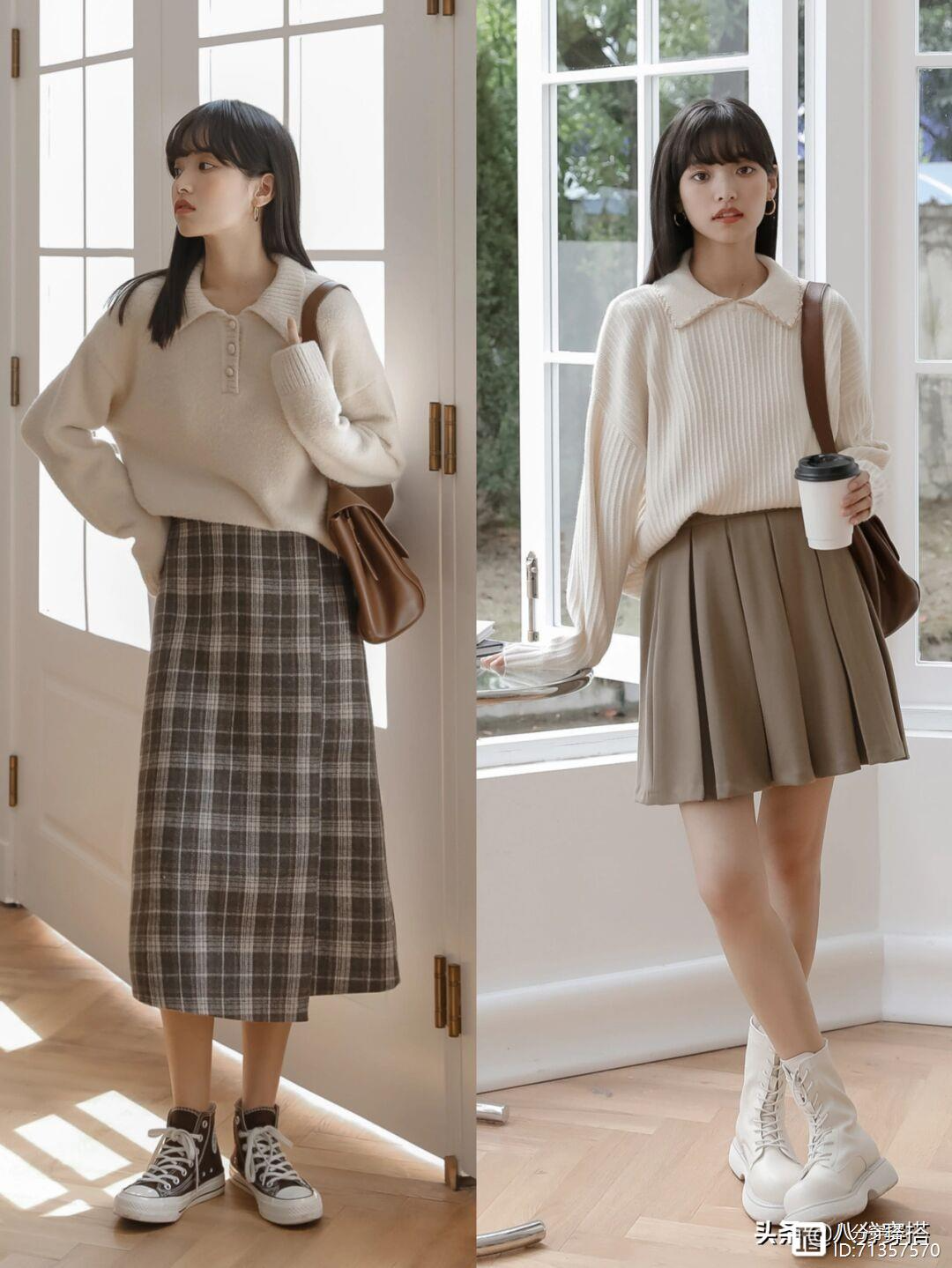 一件米色的针织衫,选择尖领的款式设计多了一份洒脱帅气的感觉,修饰脸型,结合上几颗纽扣的点缀,多了一份俏皮灵动的魅力,更加的减龄俏皮,下半身搭配上格纹的直筒半身裙,线条流畅利落,简约大方又舒适,这样一身搭配不管是直接单穿还是和其他的单品进行叠穿都不出错,日常舒适。