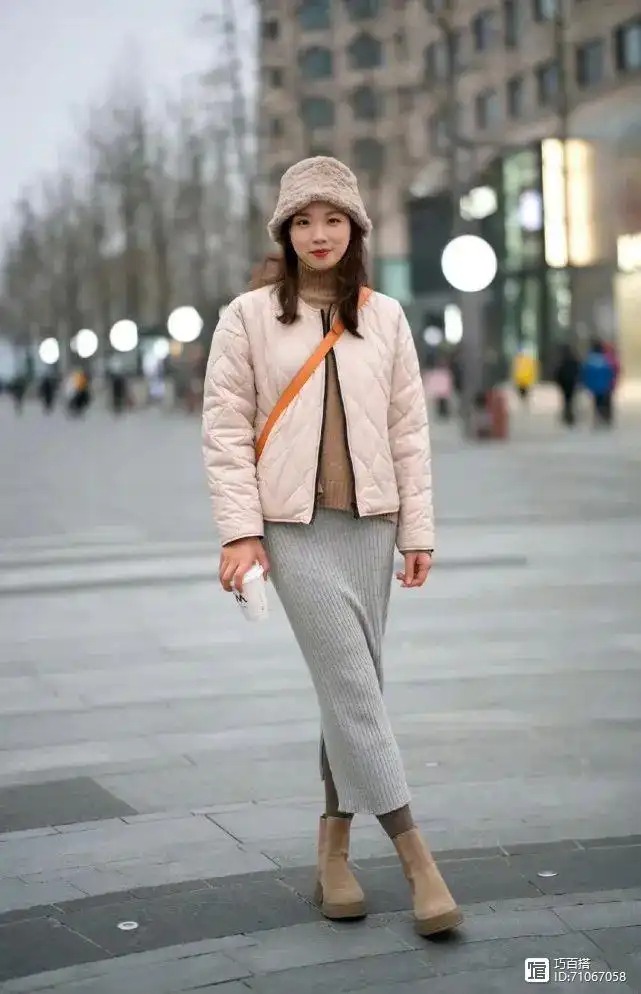 它既可以是素人小姐姐身上这款轻薄款压痕羽绒服,也可以是短毛绒外套,更可以是小香风外套,天气热了,可直接换成短牛仔、jk西装等。