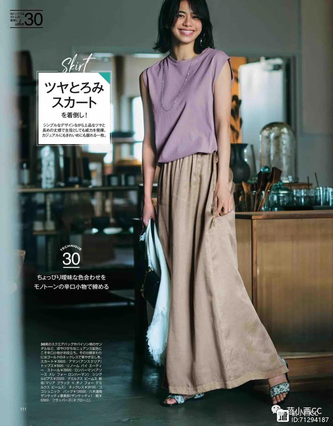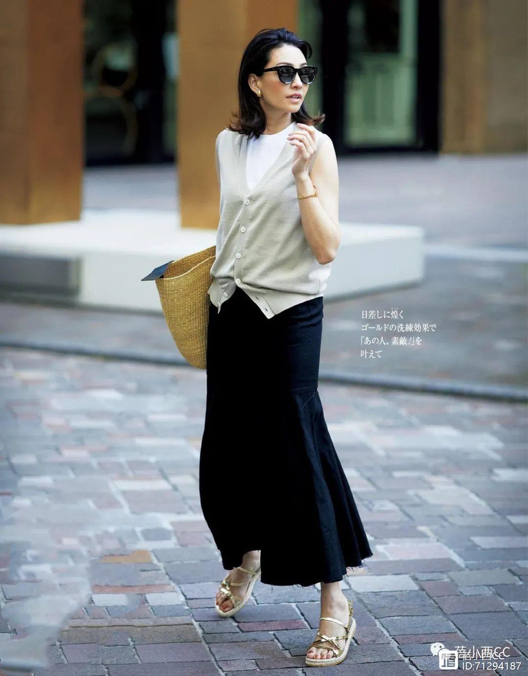 在中年女性的衣橱里,裙子单品的出街率是非常高的,因为裙子是最能彰显女性魅力的款式,但对于中年女性来说,裙子的长度有一定的讲究。在日杂风里,裙子长度及膝的款式是最受欢迎的,一方面可以让造型呈现出更加优雅的女人范,另一方面又能更好的修饰身材,可以说是气质的化身。