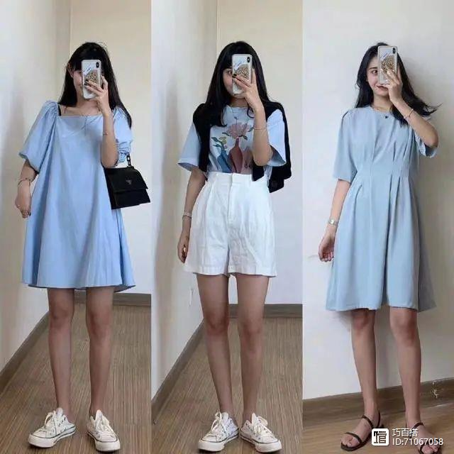 清新明亮的配色中,除了白色系蓝色一定是最为百搭不挑人的颜色了。首先蓝色一定是一个不会惹人讨厌的颜色,属于冷色调所以在夏季穿着更加分。