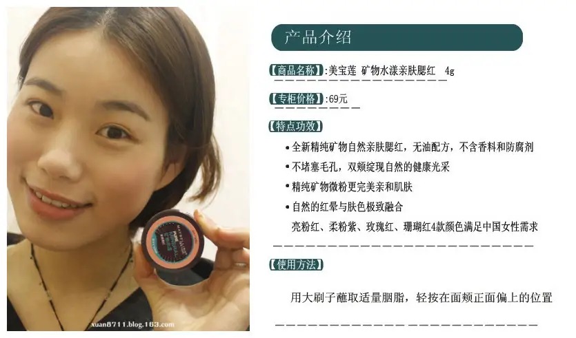 该产品能完美亲和肌肤,自然的红晕与肤色极其贴合,让双颊展现自然的健康光彩。