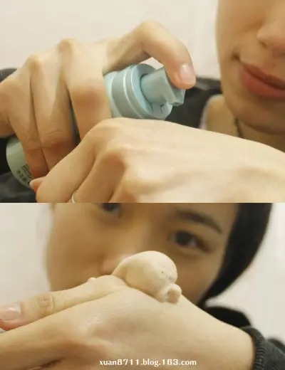 使用前需要轻轻摇晃几下,挤出像摩丝一样的泡沫体,涂抹开来,非常的轻薄,可以打造零妆感的妆效。