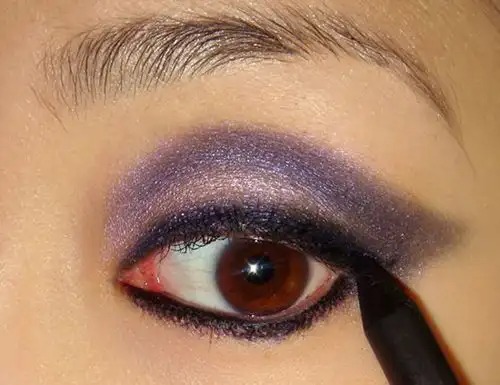 Step 4:用黑色的眼线笔描画上眼线和下眼线。