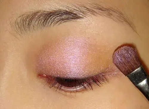 Step 2:给眼睑涂上闪闪的粉色眼影,湿润的眼影刷沾取眼影粉上妆,效果更好哦。