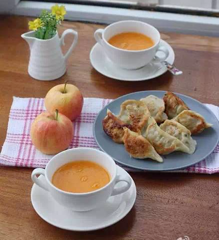 4、油煎饺子,南瓜米糊,苹果