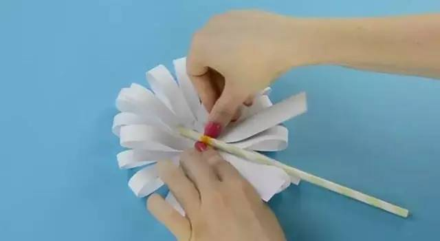 白色球形卡纸下粘上卡纸条,一只水母很快就做好啦~