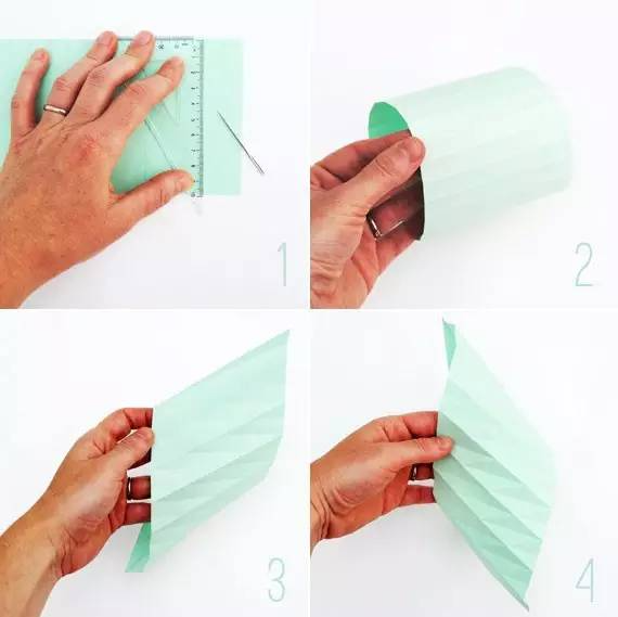 准备一张长方形的卡纸,先在卡纸上刻竖线,再刻斜线,做出图4的形状~