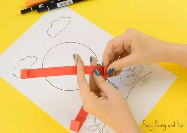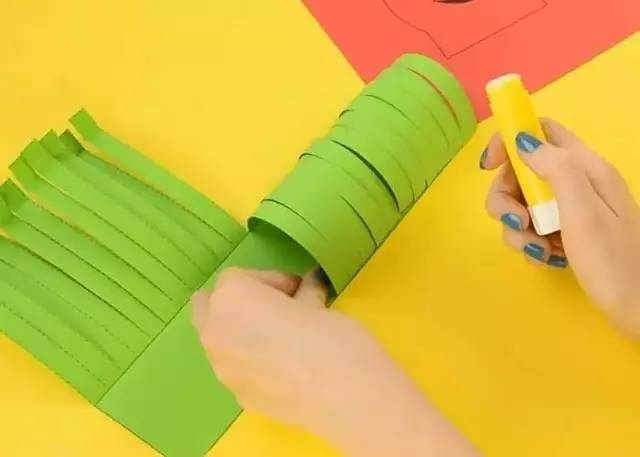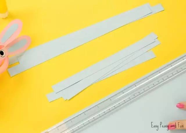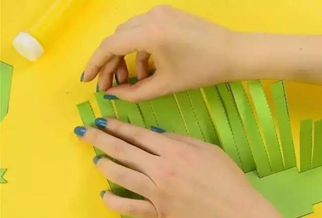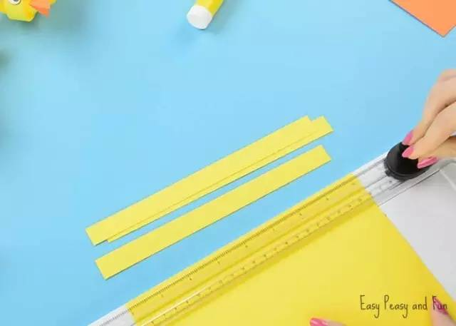 做法:1、把黄色卡纸裁剪成宽度相同的纸条