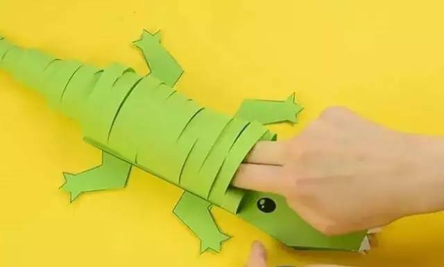 8、接下来把鳄鱼的头和身体交叉粘在一起,留出下巴部分