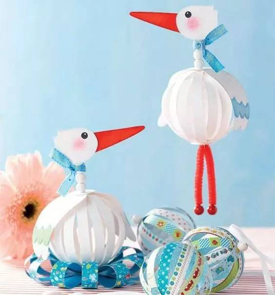 薄纸拧一拧,做成丹顶鹤的脖子,粘上卡纸做的头部,红色绸带做的腿,美美的丹顶鹤就诞生啦~
