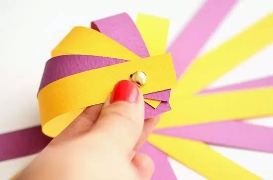 用手工钉将8条卡纸扣在一起,没有手工钉也可以用漂亮的绳系住哦~