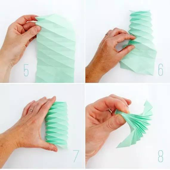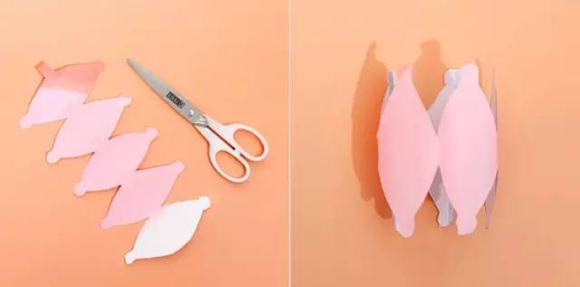 剪出之后,将两端粘在一起,再粘上一些亮条,就可以做出一个精美的灯笼球啦~